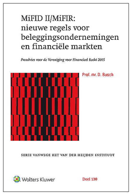 Tegelijk met richtlijn MiFID II treden de verordening MiFIR (de Markets in Financial Instruments Regulation) en een indrukwekkende hoeveelheid uitvoeringsmaatregelen in werking. Werkt u in de financiële praktijk, dan is het zeer zinvol om u in de veranderingen te verdiepen. Beleggingsondernemingen en banken die beleggingsdiensten verlenen en beleggingsactiviteiten verrichten, zullen veranderingen moeten voorbereiden bijvoorbeeld in hun corporate governance en risicomanagement. Met dit preadvies MiFID II MiFIR nieuwe regels voor beleggingsondernemingen en financiële markten, geschreven voor en door de Vereniging voor Financieel Recht 2015, kunt u de juiste adviezen geven en besluiten nemen.